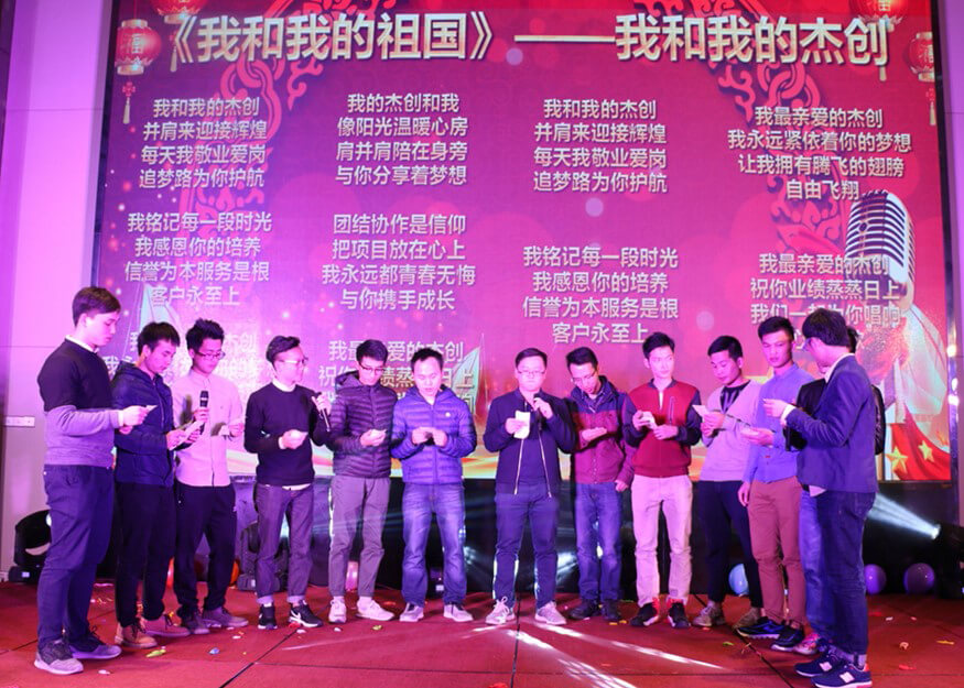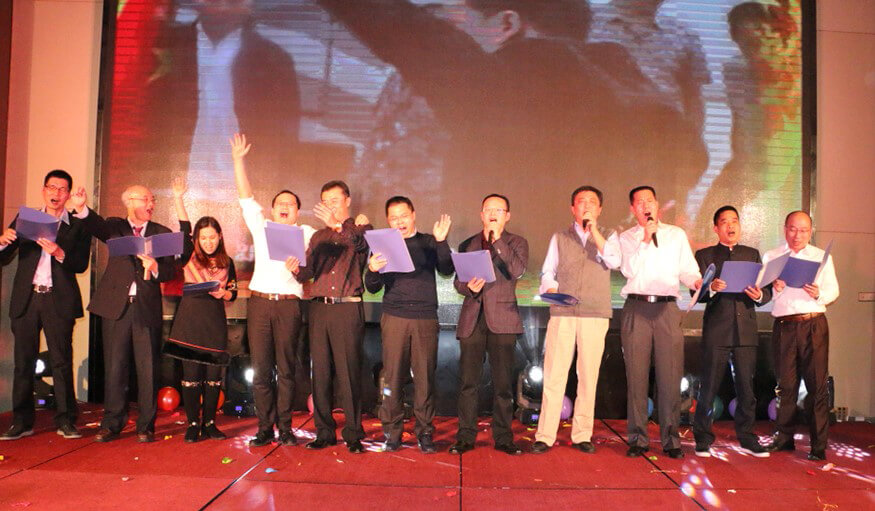 在度过三个小时的欢乐时光后,年会进入了尾声。全场人员齐齐进入演唱状态,伴随着优美的旋律,接连合唱了《相亲相爱一家人》、《同一首歌》、《朋友》三首歌曲。歌声飞扬,群情高涨,将现场气氛推向最高潮。大家放开歌喉,大声唱出心底的心声,尽情表达出对星空电竞xingkong、对他人的祝福和感恩。所有人的歌声交织在一起,彼此的心灵也在密切地交流。在响亮动听的大合唱中,星空电竞xingkong智能2016年度总结表彰大会暨2017迎新年会圆满落下了帷幕。